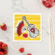 A mid-century style design with a retro touch featuring souvenirs from a Spanish holiday; a wrought iron guitar, lacy fan and red rose on a golden striped background. A customizable design for you to personalise with your own text, images and ideas. An original digital art image created by Jess Perry at QuirkyChic Retro