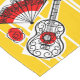 Whimsical design drawn in a retro style featuring souvenirs from a Spanish holiday; a wrought iron guitar, lacy fan and red rose. A customizable design in black, white, red and golden yellow for you to personalise with your own text, images and ideas. An original digital art image.