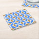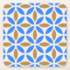This sea of blue and brown petals on this paper coaster brightens you coffee table. Abstract colorful blue and brown petals geometrically organized. Tile design from Barcelona, Spain. A traditional pattern from the late nineteenth an early twentieth century. Get a bit of the mediterranean in your life. Barcelona is a Spanish city and among many things it known for its colorful cement tiles. These tile form patterns, sometimes geometric, on floors and wall. The tiles are popular because they give such a Mediterranean vintage look and feel in your house. As if you are in Spain. Cement tiles are not baked in an oven but are a version of Portland cement. The first layer applied is the color pattern and the second, thicker, layer is the grey cement layer. Then they are pressed together. The top pattern layer is fused with the bottom cement layer. This type of tile is very durable.