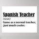 Spanish Teacher, like a normal teacher, just much cooler. Funny definition for Spanish teachers women and men. Awesome present idea for Español educator mom, dad, sister, brother, son, daughter, uncle, aunt, grandma, grandpa, friend, coworker, wife, husband...