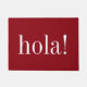 Here's a simple red and white Spanish home welcome mat that simply says hello in the Spanish language and is displayed in a bold and easy to read typography style that is presented in a modern way.