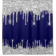 Spark Drips Glitter Effect Blue Navy Silver Gray Shower Curtain