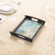 This is a well made, sturdy wooden tray with a flawless black finish and lovely map on the tray surface. It is both vintage & modern at the same time. Looks exactly like the photo; does not disappoint. So nice to find something of quality individually made and not the mass-produced 'shabby chic' merchandise seen in stores. I am so pleased to be able to give this to my college-age niece for her birthday. This can be used as a tray to hold jewelry or toiletries, or hung on the wall as art. The map surface is sealed (it is slightly shiny) so would be moisture resistant. It is well worth the asking price but I was able to apply a sale code as well. Very happy with my purchase. Map is crisp & clear and sealed with a water-resitant finish.
