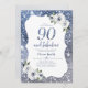Sparkle blue glitter and floral 90th birthday invitation