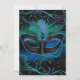 Sparkle Blue & Green Mask Masquerade Quinceanera Invitation