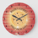 Fun kitchen clock for bakers featuring a glowing, sparkling chocolate chip cookie, brick background, and personalized with your name or other text, perfect for baking lovers.