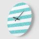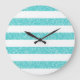 Trendy and fun Sparkle Glitter Look Stripes Wall Clock. This design features a sparkly faux glitter look striped pattern in turquoise. Add text to this design to give it a personal touch.