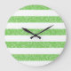 Trendy and fun Sparkle Glitter Look Stripes Wall Clock. This design features a sparkly faux glitter look striped pattern in green. Add text to this design to give it a personal touch.