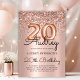 Sparkle Glitter Rose Gold Balloon 20th Birthday Invitation