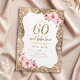 Sparkle gold glitter and pink floral 60th birthday invitation