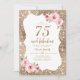 Sparkle gold glitter and pink floral 75th birthday invitation