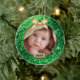 Sparkle Green/Gold Bow Photo Ceramic Ornament