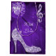 Beautiful thank you birthday gift bags. Perfect for birthday party favors with glitz and glamour, with a funky retro disco mirror ball, glamorous printed image rhinestones, glitter, sequins, bling jewels sparkle high heels stilettos shoes, and glittery musical notes / music notes with sparkles on a vibrant purple lights and sparkles background. Chic, classy, cute, girly, modern design for parties in trendy, fashionable colors. These are groovy, fancy, stylish, sophisticated, pretty, girly gift bags. Perfect for a dinner dance dancing event.PLEASE NOTE: All products on Zazzle have flat printed images. If you need any assistance customizing your product or would like matching products please contact me through my store and I will be happy to help.