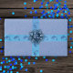 This roll of ribbon is a pretty water look blue with sparkle dolphins who are dark blue with white stomachs in a jumping position.