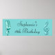 Personalized, elegant custom birthday party banner for womens' 18th Birthday or any age. Beautiful turquoise background a funky teal / turquoise retro vintage microphone, and a pretty, glamorous printed image rhinestone glitter, sequins, jewels sparkles glittery musical note / music note. Chic, classy, cute, girly, modern 18th birthday party celebration banner with trendy, fashionable teal / turquoise colors. Groovy, stylish, sophisticated, pretty retro mic music note personalised banner for girls, teens and women of any age. Perfect banner for a dinner dance dancing or Karaoke singing event. If you need any assistance customizing your product please contact me through my store and I will be happy to help.