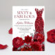 Sparkle Red Dress & Roses 60th Birthday Party Invitation