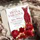 Sparkle Red Dress Roses Gold Leaf 50th Birthday Invitation