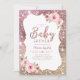 Sparkle rose gold glitter and floral baby shower invitation