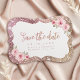 Faux sparkle rose gold glitter frame and "save the date" script with blush pink floral, elegant and stylish. Great save the date card for modern wedding, romantic wedding, and botanical garden wedding.