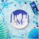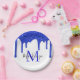Sparkle Royal Blue Glitter Drips Monogram Paper Plates