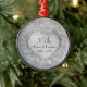 Beautiful ornate silver heart over sparkling silver glitter print on these lovely romantic keepsake ornament celebrating their milestone twenty fifth Wedding Anniversary. Text is ready for you to customize with their names and dates.