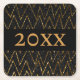 Sparkling Black & Chevron | Custom Gold New Year Square Paper Coaster