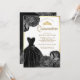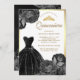 Sparkling Black Gown Grey Roses Gold Quinceanera Invitation