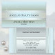 An elegant business card featuring a striped silver blue design on a green blue background with silver sparkles. The back of the card is set up to write down appointments. If you do not need that, you can delete or customize the texts and/or image. It is also possible to copy/paste an image to the other side of the card.