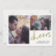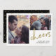 This modern new year's card features two of your personal photos, with faux gold sprinkles and the word "cheers" in trendy faux gold handwritten script.