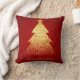 Sparkling Christmas Tree Golden Red Throw Pillow