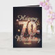 Celebrate seven remarkable decades with this beautifully crafted greeting card. It has a dark background with a sparkling, glittery design that gives it an elegant and festive feel. The text reads "Happy 70th Birthday" and a placeholder name in a mix of cursive and bold fonts, with the number "70" prominently displayed in the center. The number has a shiny, reflective pattern, making it stand out. Surrounding it are decorative elements like stars, musical notes, and light reflections, adding to the celebratory atmosphere. The front and inside text are fully customizable, allowing you to personalize every detail. Need it quickly? Opt for an instant digital download for easy sharing. Make their 70th birthday truly unforgettable with a card as unique as their journey.