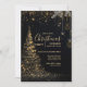 Illuminate your holiday celebration with this enchanting invitation featuring a magnificent gold sparkle Christmas tree adorned with hanging ornaments against a magical starlit black background. Golden decorative elements and festive snow create an atmosphere of luxury and wonder, ideal for elegant evening parties and sophisticated seasonal celebrations.