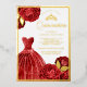 Sparkling Gown Red Roses Quinceanera Gold Foil Invitation