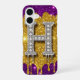 Sparkling Letter H With Gold Glitter Drip iPhone Case