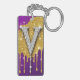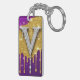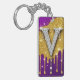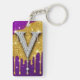 Sparkling Letter V With Gold Glitter Drip Keychain