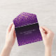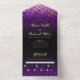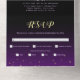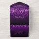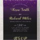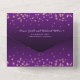 Sparkling lights in the sky purple winter night wedding invitation that showcases white and pale yellowish lights that sparkle on purple gradient background. The names are in script typography and the tear off RSVP card can be detached.