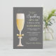 Invite your family and friends to meet your sweet new baby girl at a "Sip and See" open house with this fun invitation featuring a "sparkling" champagne flute of bubbly, tied up prettily with a little yellow gold bow and set against a background of trendy gray. "Sip & See's" are a great way to have a set time and date for introducing baby to everyone at once. Perfect for a second child or in lieu of a traditional baby shower.