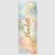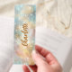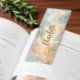 Immerse yourself in a total dreamscape with this personalized bookmark, reminiscent of a pastel sky at sunset dusted with fairy magic. Soft, cloud-like swirls of peach, pink, blue, and yellow form a watercolor backdrop, throughout which a cascade of twinkling starbursts and glimmering dots of light are scattered. Tiny sparkles and larger, radiant bursts, some with golden glows, add breathtaking depth and shimmer, like miniature fireworks in the sky. This light, airy design evokes a celestial calm, like a gentle sky just after sunrise, filling your reading with quiet promise and romantic feeling. It's a cosmic fairytale turned into a beautiful, magical, and radiant accessory for your books, custom-made with your name.