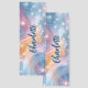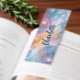Experience a dreamscape like no other with this gorgeous personalized bookmark, reminiscent of an aurora borealis with a pastel makeover. It features a dreamy swirl of soft, flowing colors—cotton candy pink, peach, baby blue, and lavender—blending seamlessly in elegant, dancing waves. Bright, sparkling bursts of light, like delicate firework starbursts and glittering confetti, are scattered across this fluid backdrop, illuminating the design. The light effects follow the swirls, giving a sense of vibrant, shimmering energy, creating an ethereal and radiant piece of celestial art. Personalize this magical accessory to hold a piece of the sky at sunrise, where dreams and light swirl together in a gentle dance.