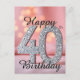 The postcard's design is an elegant masterpiece: the number “40” shines brightly with silver sequins that glisten like stars in the night sky, set against a delicate pink background adorned with dreamy bokeh lights. The text “Happy 40th Birthday” flows across the card in a graceful, celebratory script, a visual symphony of sophistication and joy. And here's the best part—the text is fully customizable. Make it your own by adding a heartfelt message, a cherished name, or a playful note to make it uniquely yours.