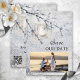 A romantic winter wedding Save the Date card featuring a candle lit lantern in a winter wonderland sparkling snow scene. With your custom photo and on the back a QR code template (optional).