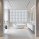 This ceramic tile features a modern and elegant sparkling white terrazzo pattern. The design incorporates a mix of white and light gray specks, creating a sophisticated texture that adds a touch of contemporary style to any space.