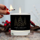 Give your friends and family a beautiful, personalized gift this holiday season with this Sparkling Winter Pine scented candle. The candle features snowy, faux gold foil pine trees with a black background. The festive phrase "Merry Christmas" is displayed in modern white lettering with your name or custom text below. The design repeats on the back of the candle.
