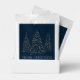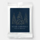 Festive holiday hot chocolate packets featuring snowy faux gold foil pine trees with a navy background (or color of your choice). "Merry Christmas" is displayed in a white, modern serif font with your name or custom text below. The personalized hot chocolate packets are perfect to use as stocking stuffers and holiday party favors.