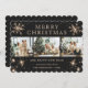 Sparkly Black Snowflake Modern Photo Collage Holiday Card
