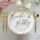 Minimal and unique basic bridal brunch paper plates for your bridal shower. the brunch paper plates are easily customizable with your name in a serif style featuring the Brunch and Bubbly in calligraphy script.