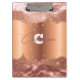 An elegant rose gold metallic background and faux foil and glitter elements enhance the personalized look of this clipboard which features your name and initial. The text is fully customizable.