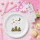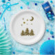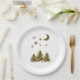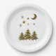 Hand-cut golden sparkle Christmas tree, christmas spruce, moon, stars on paper Plate.