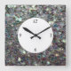 Sparkly colourful silver mosaic with numbers square wall clock