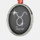 Sparkly glam round ornament features the zodiac / astrological symbol for Taurus in diamond rhinestones on black background. Taurus is assigned to those born April 21 until May 20